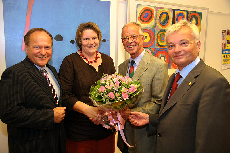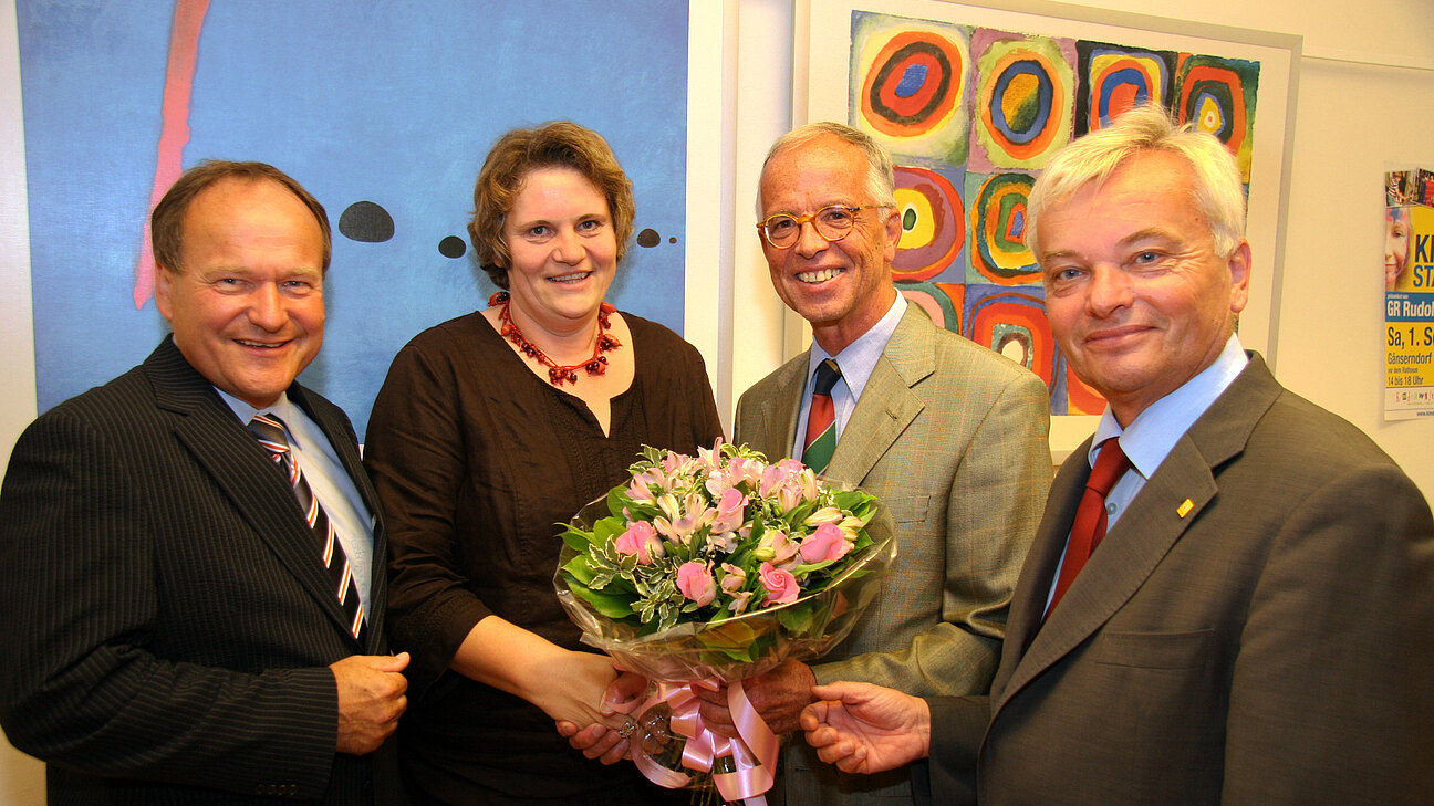 Seit 25 Jahren lenkt Helga Ebner in der Bezirksgeschäftsstelle Gänserndorf die Geschicke der Volkspartei. Im Bezirk hatte sie unter NR-Präs. Roland Minkowitsch, Präs. Ferdinand Reiter und Präs. Matthias Bierbaum begonnen, seit 23 Jahren ist Werner Fasslabend nun Obmann, Bezirksmandatare in ihrer Zeit waren und sind Monika Lugmayr, Richard Kaiser, Herbert Nowohradsky und Hermann Schultes. Im Land war Siegfried Ludwig Landeshauptmann, als Landesgeschäftsführer hatte sie Gustav Vetter, Ernst Strasser, Johanna Mikl Leitner und nun Gerhard Karner als Chef. Im Rahmen einer Bezirksvorstandssitzung überreichten die Mandatare einen bunten Blumenstrauß. „Bei Helga Ebner finden alle unsere Funktionäre und Mitarbeiter aus den gemeinden eine immer kompetente und rührige Ansprechstelle. Ohne ihren unermüdlichen Einsatz wären viele Aktionen, die wir durchführen, nicht möglich. Wir wünschen ihr alles Gute und uns allen noch eine lange Zusammenarbeit“, lobte Fasslabend seine Mitarbeiterin. Wenige Tage zuvor hatte Landesgeschäftsführer Gerhard Karner Helga Ebner im Kloster und bei einer Konferenz aller ÖVP-MitareiterInnen in großem Rahmen ebenfalls mit Blumen für die Treue und Mitarbeit gedankt.