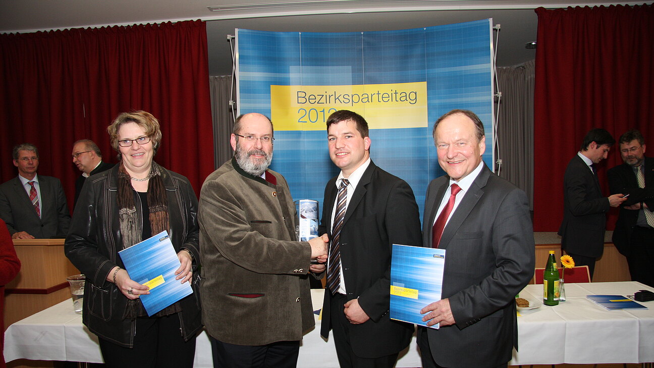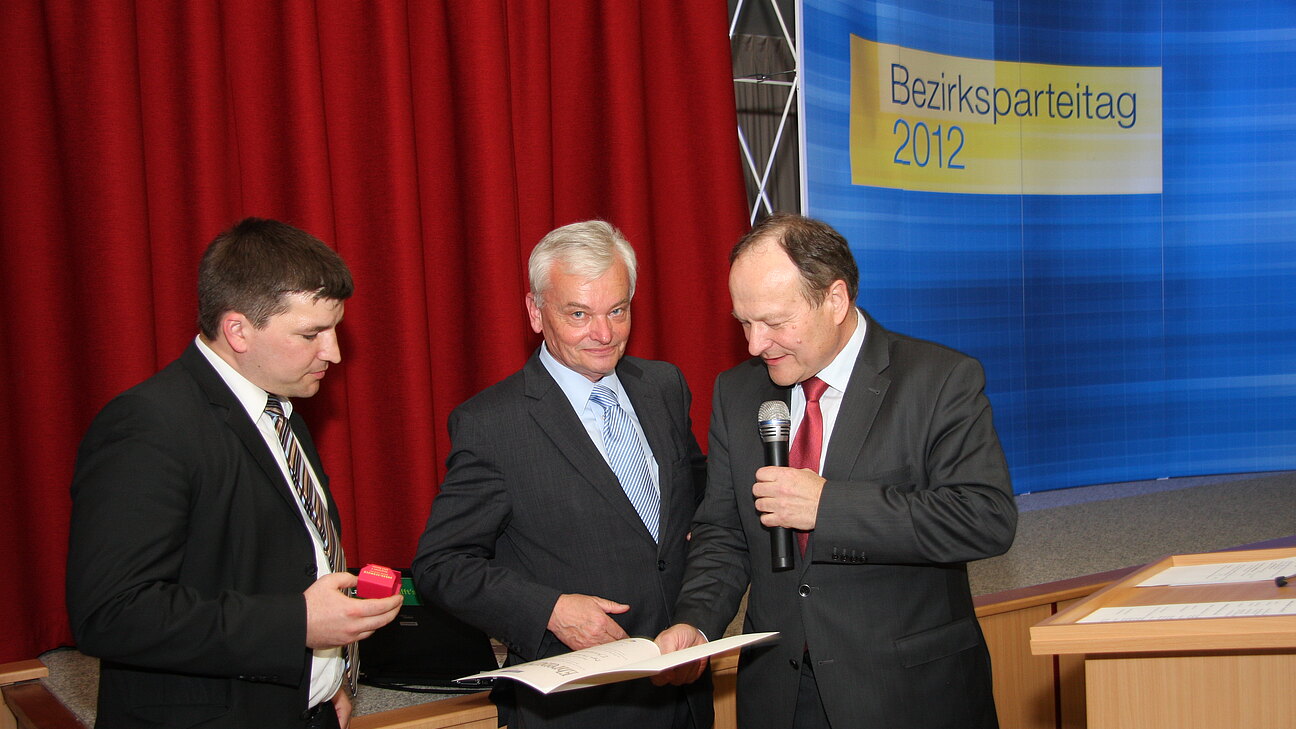 Nach der Wahl wurde Herbert Nowohradsky von den Delegierten zum Ehrenparteiobmann des Bezirks gewählt und erhielt den Ehrenring der Bezirkspartei Gänserndorf als Dankeschön für seinen unermüdlichen Einsatz. Auch der langjährige Bezirksgeschäftsführer Walter Hansy wurde gebührend verabschiedet und erhielt einen Reisegutschein für einen Gletscherflug in Alaska. Die über 200 Delegierten verabschiedeten die beiden, die lange Jahre die Geschicke der Bezirkspartei prägten, mit Minuten langen Standing Ovation.