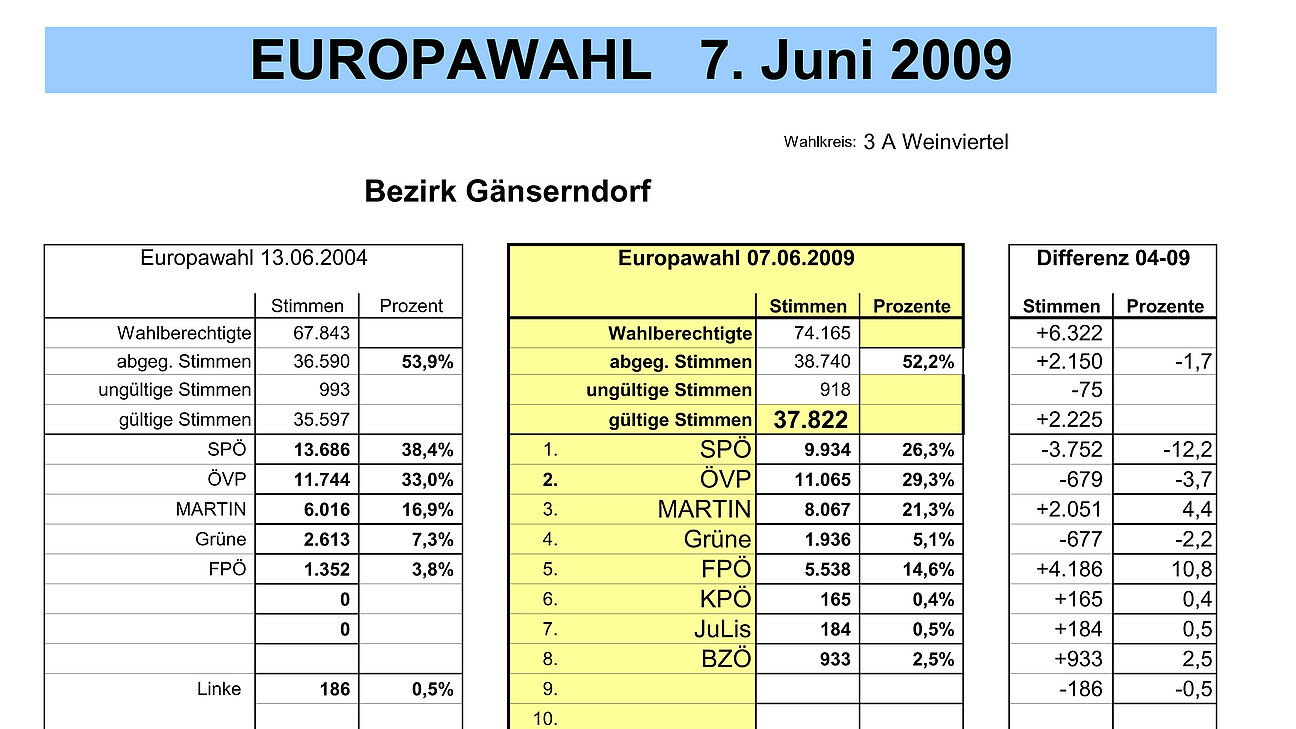 Danke auch allen Mitarbeiterinnen und Mitarbeitern. "Unser Einsatz hat sich gelohnt. Die klare Linie wurde honoriert. Keine andere Partei brachte ihre Spitzenkandidaten in den Bezirk, um für Europa zu werden. Bei uns waren Spitzenkandidat Ernst Strasser (Kurklinik Bad Pirawart6h), Othmar Karas (EU-Talk Volksbank Gänserndorf) und Aussenminister Michael Spindelegger (Betriebsbesuche in Deut5sch Wagram), zog Bezirksobmann Präs. Herbert Nowohradsky zufrieden Bilanz.