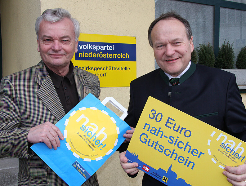 Die gemeinsam mit der NÖN durchgeführte Aktion soll einerseits jede Geschäfte in den Mittelpunkt rücken, die sich der Konkurrenz der Supermärkte stellen und die Versorgung in den Ortskernen aufrecht erhalten. Sie soll aber auch ein Dankeschön an jene Kundinnen und Kunden sein, die beim Geschäftsmann im Ort einkaufen. Es werden in den kommenden 4 Wochen Gewinner der Aktion veröffentlicht, es winken jeweils 30.- Euro-Gutscheine. „Achten Sie auf das Logo Nah Sicher, vielleicht sind auch Sie bei den Gewinnern“, laden Präs. Herbert Nowohradsky und NR Hermann Schultes zum Mitmachen ein.