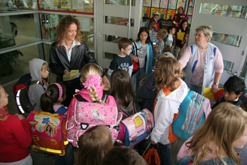 Die Kinder interessierte an diesem Tag aber mehr das Eis und die Malbücher. Die erste Gruppe kam schon um 10 Uhr in den Eissalon, wo sie von Kristina und Guiseppe Fausti empfangen wurde. Von der Volksbank waren Jugendbetreuer Christoph Demmer und Prok. Walter Hansi gekommen, um den Erstklasslern beim Eisessen Gesellschaft zu leisten. Rudolf Stöger als Vertreter der Initiative für LH Pröll hatte mit seinen Helferinnen und Helfern tags zuvor für die Verteilung der Eisgutscheine gesorgt.