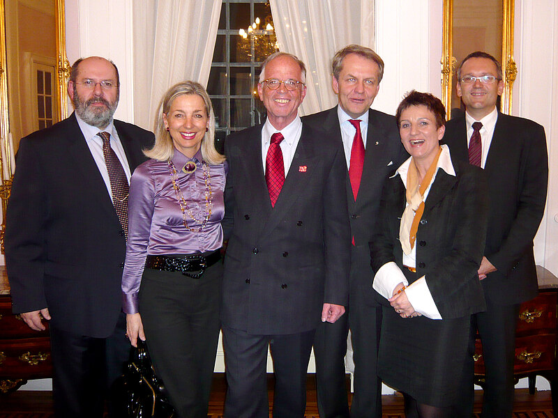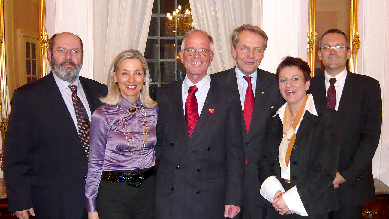 Die Ehre der ersten Urkunde mit Ehrennadel wurde BM a.D. Dr. Werner Fasslabend zuteil. Er ist Präsident der Österreichsch-Slowakischen und der Österreichisch-Iranischen Gesellschaft.