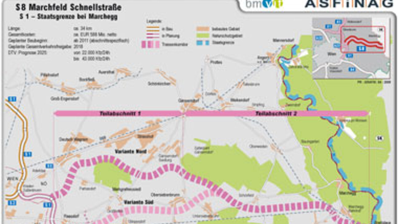 „Die Straße soll die Gemeinden vom Durchzugsverkehr entlasten und mehr Lebensqualität für die Anrainer bringen“, unterstreichen Präs. Herbert Nowohradsky, Bgm. Karl Grammanitsch und Bgm. Walter Krutis. Sie vertreten die Interessen der Gemeinden im Planungsbeirat und verhandelt oft hart mit der ASFINAG. In fünf bis sechs Jahren soll der erste Streckenabschnitt von Süßenbrunn/Deutsch Wagram bis Gänserndorf fertig sein.