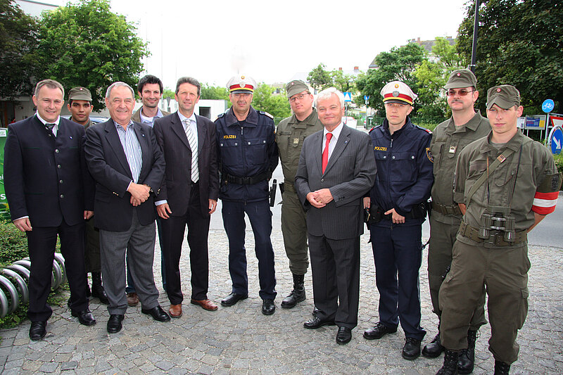 „Seit der Einführung des Grenzschutzes durch den damaligen Verteidigungsminister Werner Fasslabend hat sich die Form der Überwachung von der Grenze in den grenznahen Raum verlagert, hier leisten die Soldaten aber wertvolle Hilfe für die Polizei“, stellte Präs Herbert Nowohradsky unterstützend fest. Quirgst weis von seiner Zusammenarbeit mit dem Kommandanten des Postens von Deutsch Wagram, Josef Hodits, welche Erfolge die Koordination Polizei-Bundesheer bringt. „Einige Fälle wurden mit Hilfe des Heeres gelöst“, so der Bürgermeister. Hodits ergänzt: „Vor allem bei der Beobachtung leisten die Soldaten hervorragende Arbeit.“ In der Bevölkerung wird die Präsenz des Bundesheeres immer mehr geschätzt. „Am Bahnhof, wenn spätabens die letzten Züge ankommen, geben die Soldaten ein Gefühl der Sicherheit“, berichtet Quirgst von vielen dankbaren Anrufen bei ihm. Diesen Dank möchte er gerne bei dieser Gelegenheit weitergeben.