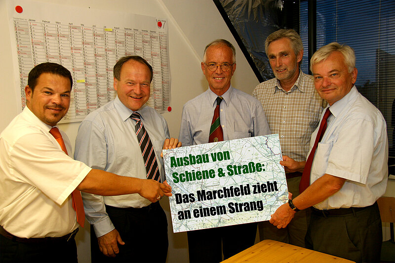 „Unsere Stärke bei den Verhandlungen um eine Vorverlegung der Ausbauprojekte bei Schiene und Bahn ist, dass Bürgermeister, die Interessensvertretungen von Wirtschaft, Landwirtschaft und Arbeitnehmervertretung und die politischen Mandatare von Bund und Land aller Parteien an einem Strang ziehen.“ Mit Optimismus gehen Werner Fasslabend, NR Präs. Hermann Schultes, Labg. Herbert Nowohradsky, Wirschaftskammerobmann Herbert Röhrer und Bgm. Walter Krutis in den Herbst, in dem es wieder eine Reihe von Verhandlungen geben wird.
