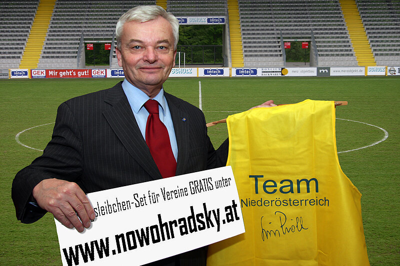 Trainingsleibchen sind bei Fußballvereinen oft Mangelware. Daher hat Labg. Herbert Nowohradsky von LH Erwin Pröll einige Garnituren bekommen, die den Fußballvereinen im Bezirk den Trainingsalltag erleichtern sollen. „Die ersten 50 Vereine, die mir unter der homepage www.nowohradsky.at ein e-mail schicken, kann ich mit je 15 Leibchen für Erwachsene und 15 Leibchen für Jugendliche bedienen“, erklärt Nowohradsky. Und so funktioniert es: Unter der Homepage auf „Kontakte“ klicken und unter Angabe des Vereinsnamens die Leibchen bestellen. Sie werden dann rasch zugestellt.