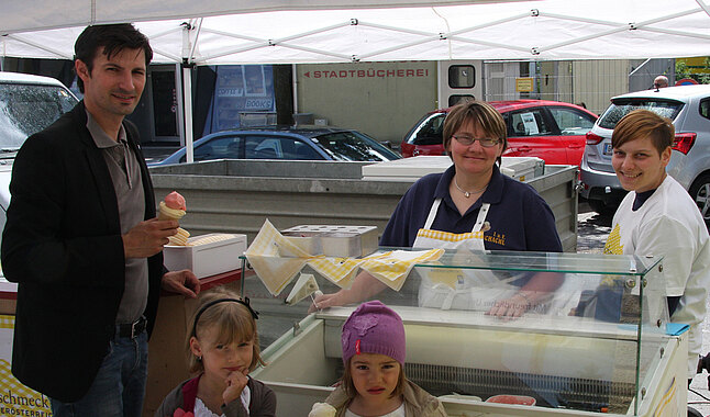 Hermann Schultes informiert Eva Himmelbauer über Anliegen des Bezirks